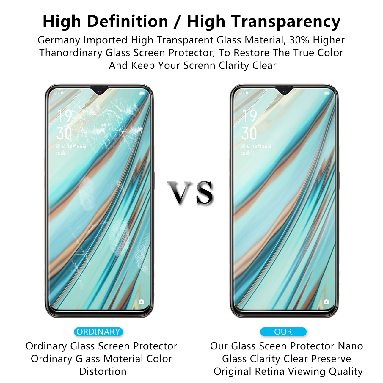 | 2 Pcs Tempered Glass For Oppo A9 2020 Glass Screen Protector 2.5D 9H Premium Tempered Glass For Oppo A9 2020 Protective Film |