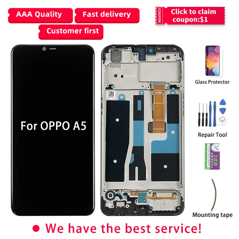 Best Price Comparison With 6.2 Orignal For OPPO A5 AX5 LCD Display Screen Touch Panel Screen Digitizer For OPPO A5 AX5 Display With Frame
