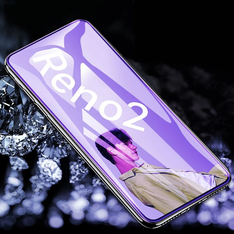 9H Tempered Glass For OPPO Reno 2 Full Cover Purple Light Anti Blue Clear Ultra-thin Front Protective Film Screen Protector