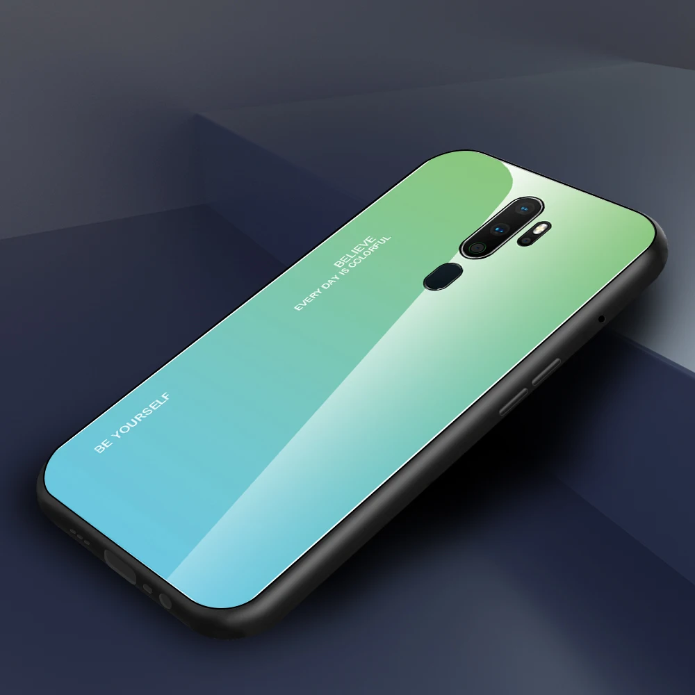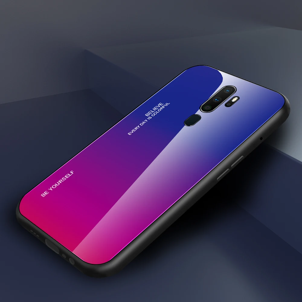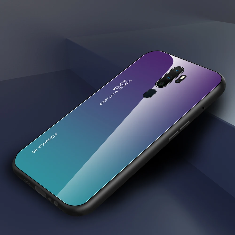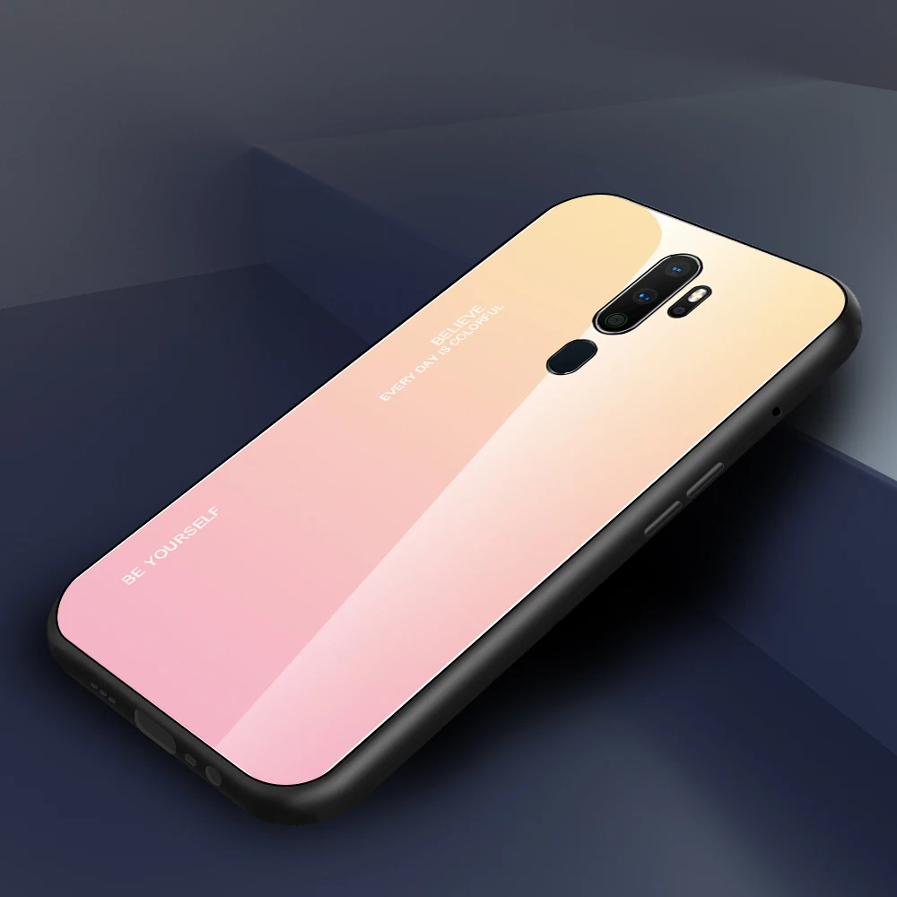 For OPPO A9 2020 A5 2020 Phone Case Gradient Tempered Glass Case Silicone Frame Hard Glossy Glass Back Cover Shockproof
