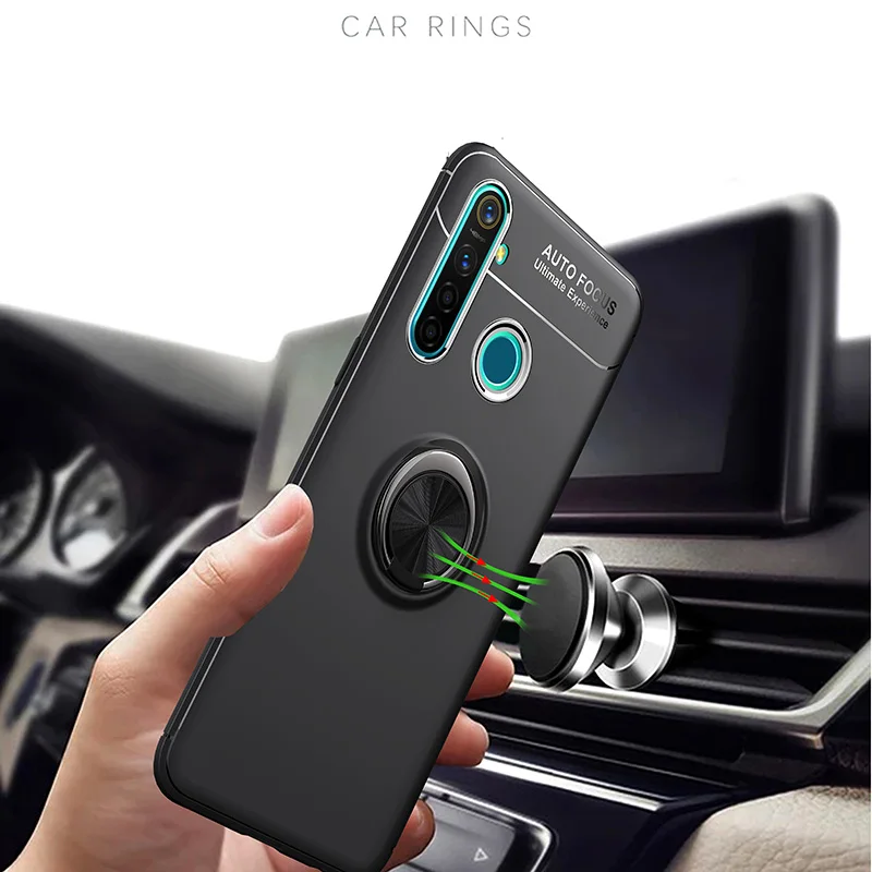 Best Price Comparison With Shockproof Case For OPPO Realme 5 Pro Case Finger Ring Magnet Matte TPU Silicone Cover For Realme 5 Pro 6.3 inch Cases Fundas