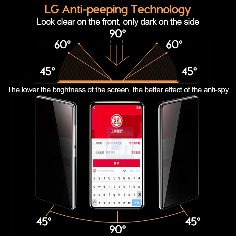 1.45 degree anti-peeping: using physical optical polarizing technology, the screen information is only visible to the right person, the image is not blurred, not distorted; others can only see the dark screen from the side of the screen, help to protect your confidential information, let you no matter what You can use your phone with peace of mind wherever you are.