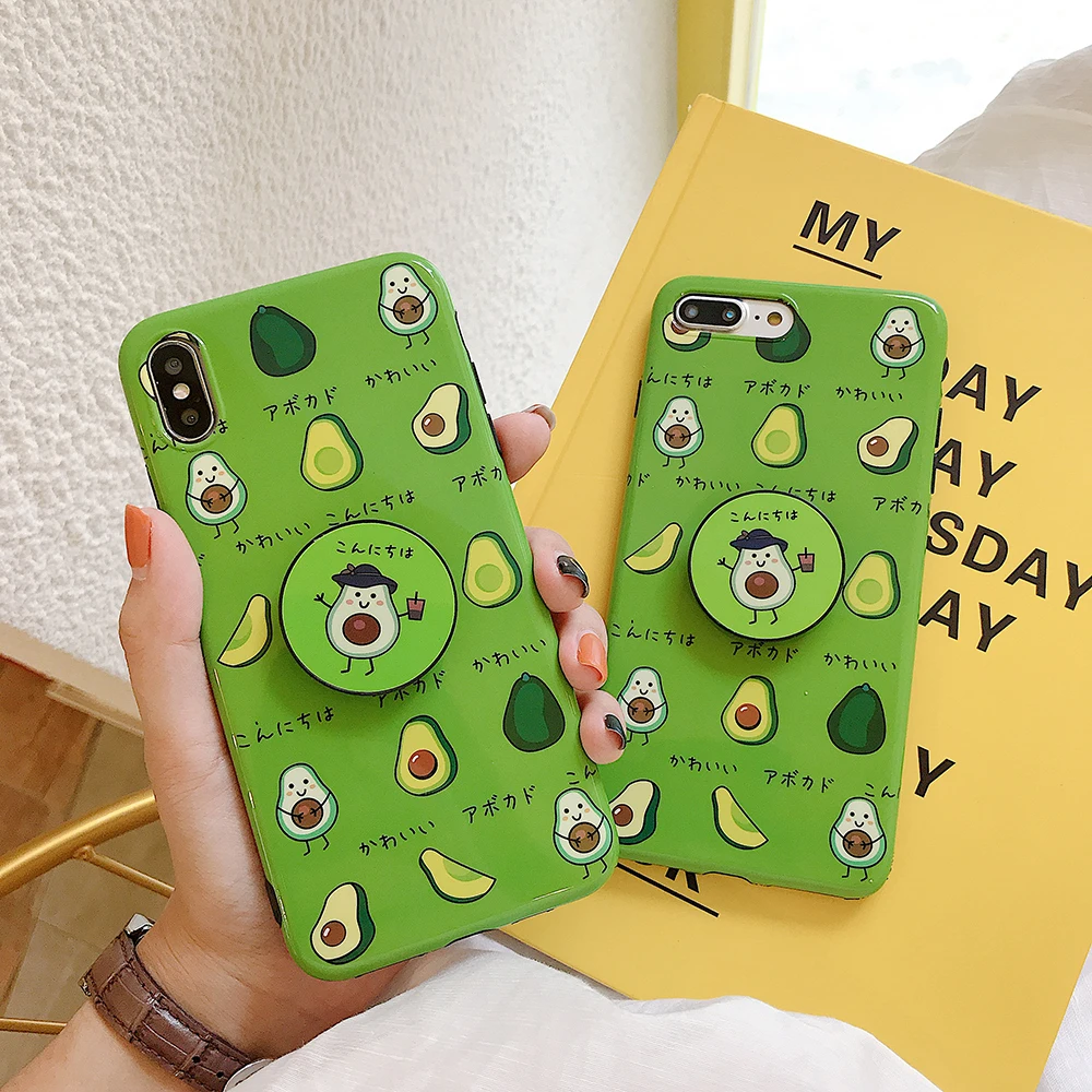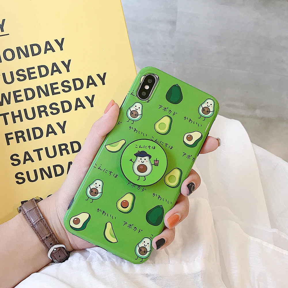 Summer Fruit Avocado Case For iPhone XS MAX XS XR 7 8 6 6S Plus Cute IMD Soft TPU Protective Phone Cover Cases With Bracket