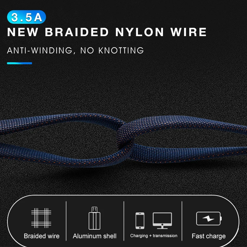 1M 3.5A Mobile Phone Fast Charge Easy to Carry Line Zinc Alloy Wove Braided Wire Luxury Data Cable Micro USB Type-C Transfer