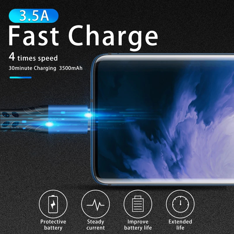 3A 1M Alloy Magnetic Cable For Xiaomi Redmi Magnetic Charge For Huawei Honor 9X Type C Cable For Oneplus USB Cable For Samsung