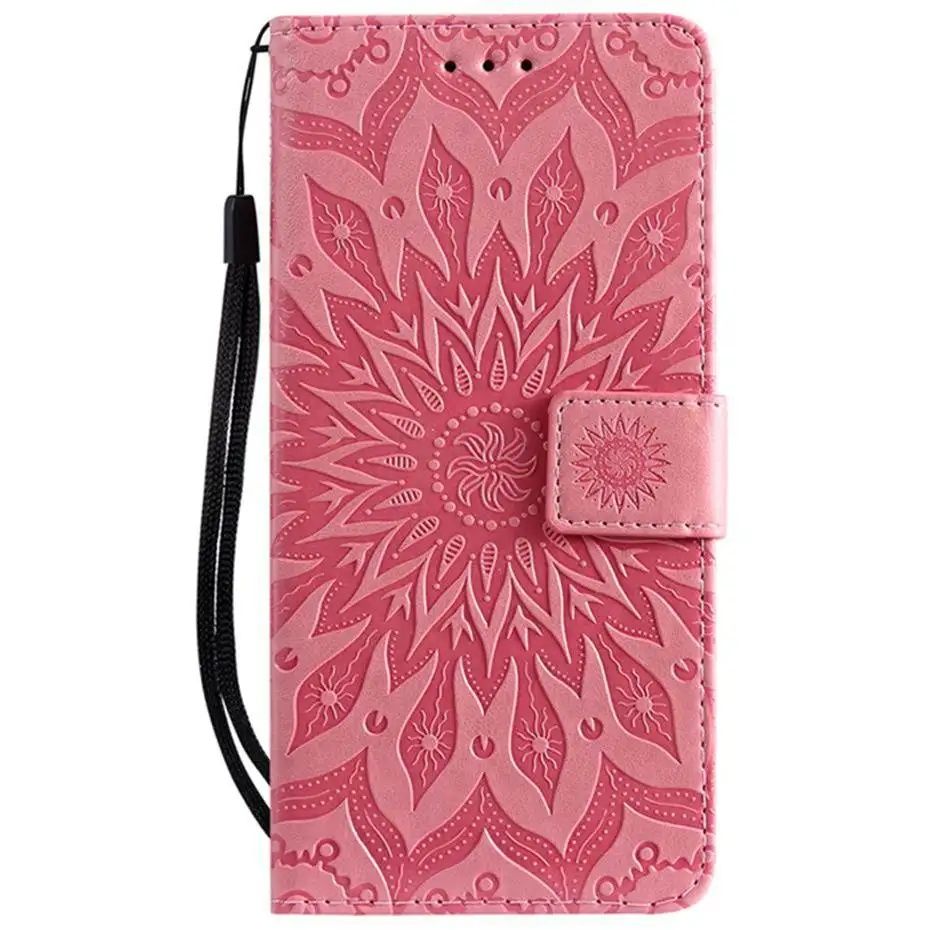 For OPPO A9 2020 A5 2020 Tree Cat Sunflower Butterfly Embossed Leather Case For Realme 5 Pro Flip Wallet Real me 3 Pro Phone Bag